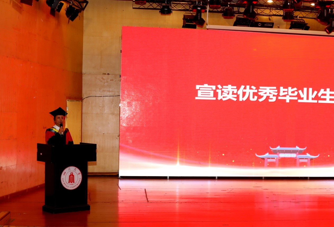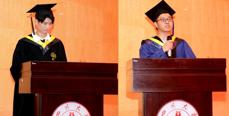 2017级本科学生毕业生代表李亚波在致辞中深情感谢了母校的倾力培养、恩师的辛勤付出和同窗的关心支持。他回首了过去的岁月,流露出了对同学、老师和母校的不舍,并表示以后将继承发扬川大优良传统,不忘初心、薪火相传,在人生道路上扎住根,实现精彩人生、成就母校荣光。