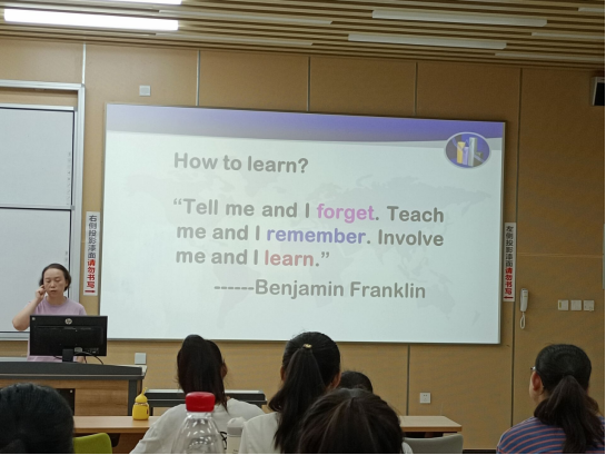 芶立教授引用的这句富兰克林·本杰明的名言:“告诉我,我会忘记;教我,我会记住;让我参与,学有收获!”提醒同学们在接下来的大学生涯如何学习。唯有以“学”这一个字为中心,以结果为最终导向,提高个人积极性,多与老师交流来解决问题,主动参与各项正能量活动,我们才能完善自我,提高自我。