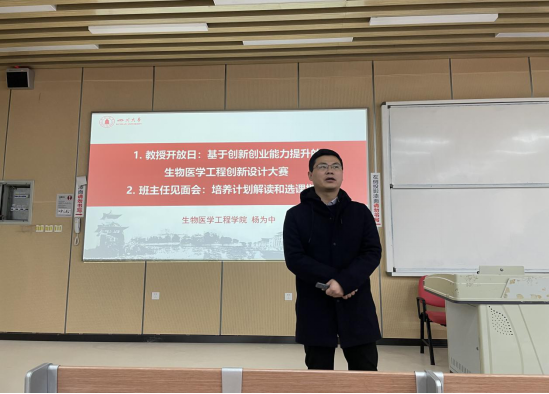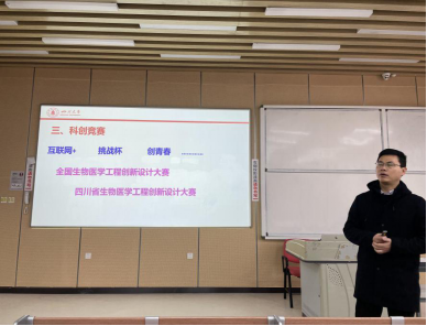 基于成果导向,杨教授鼓励同学们积极参与科创竞赛检验自己的双创能力,例如:互联网+、挑战杯、创青春以及学科特色的全国生物医学工程创新设计大赛、四川省生物医学工程创新设计大赛等。杨教授还对成人视频自行创办的四川省生物医学工程创新设计大赛进行了详细介绍。