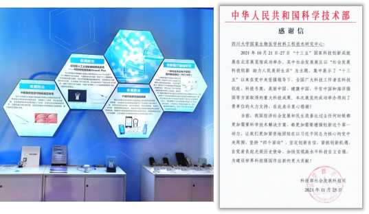 国家生物材料中心与企业牵头主研的两项“十三五”国家重点研发计划项目成果入选国家“十三五”科技创新成就展并收到科技部社发司的感谢信