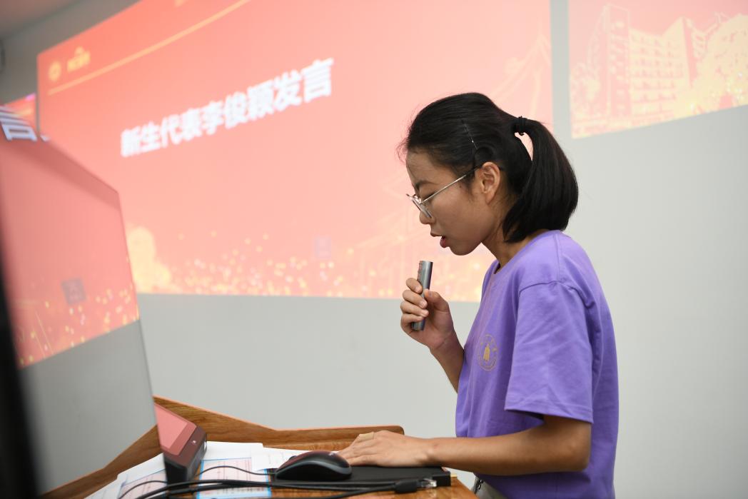 新生代表李俊颖发言,表示将秉持川大的校训“海纳百川,有容乃大”,迎难而上,脚踏实地,勇敢追逐未来的梦想。