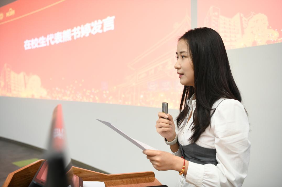 2021级研究生熊书婷作为在校生代表发言,她分享了自己的研究生学习生活的感受和经验,鼓励新同学们要勇敢走出自己的路。