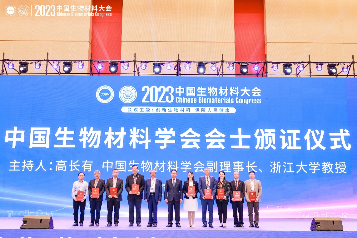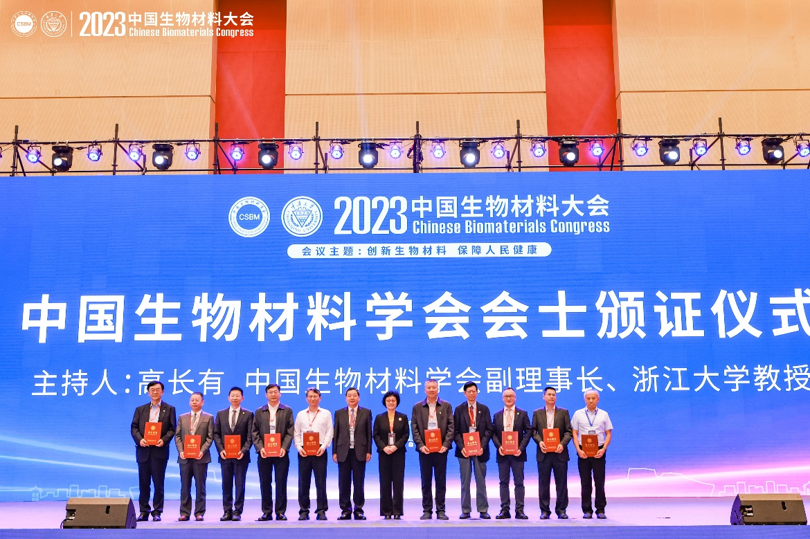 开幕式上举行了中国生物材料学会会士颁证仪式。2023年中国生物材料学会遴选首届会士,共确定张兴栋院士等46名专家当选。