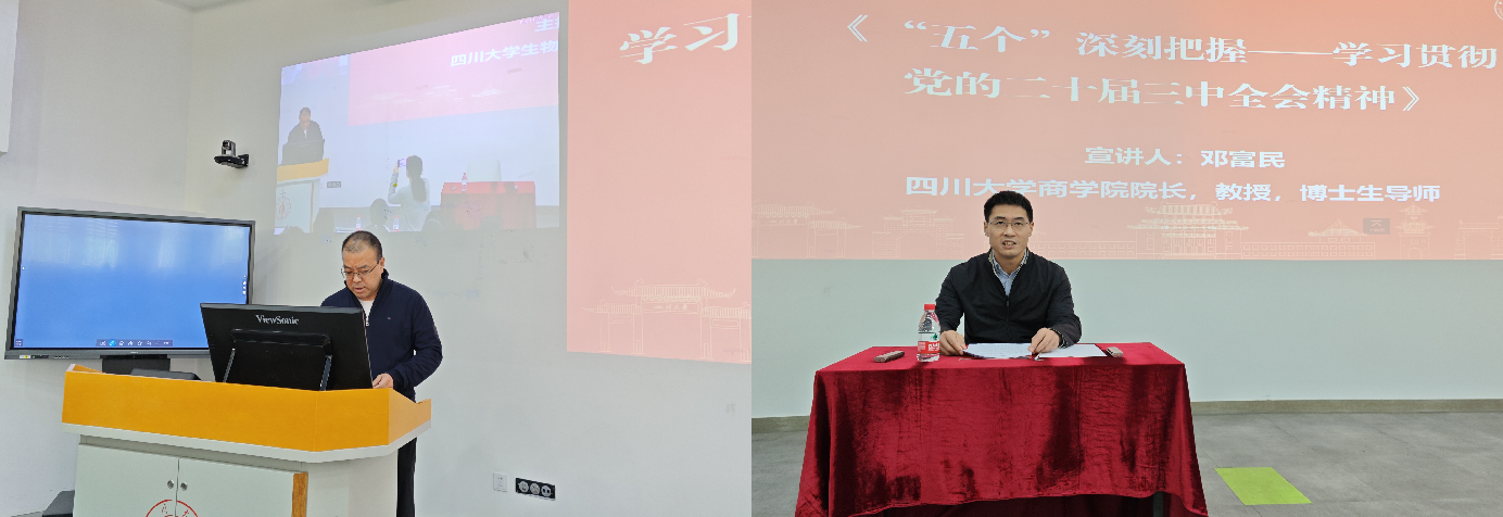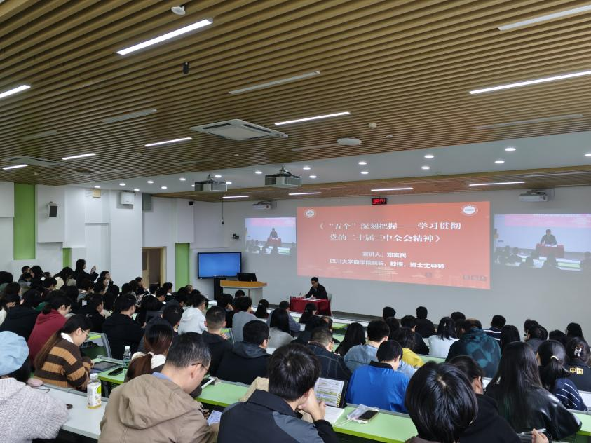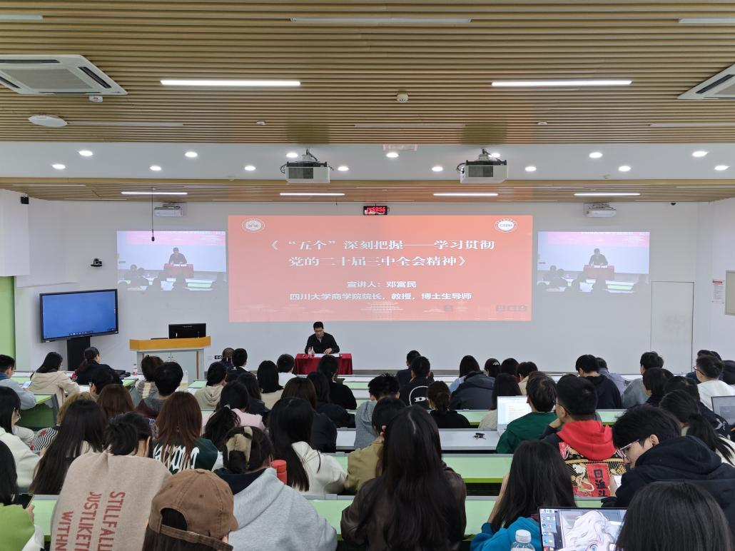 党的二十届三中全会是在以中国式现代化全面推进强国建设、民族复兴伟业的关键时期召开的一次十分重要的会议。这既是全面深化改革的实践篇章,也是推动中国式现代化的新篇章。邓富民教授的宣讲从五个维度出发,全面剖析了二十届三中全会精神的深刻内容。整场宣讲深入浅出,从改革的根本中心到全会精神需要把握的重大问题,从教育科技人才一体改革的必要性到维护国家安全的重要性,邓教授层层深入,宣讲内容丰富生动详实,还选取了与科技、学科发展及人才建设等密切相关的事例。既有理论高度,又密切联系实际,让大家获益良多。
