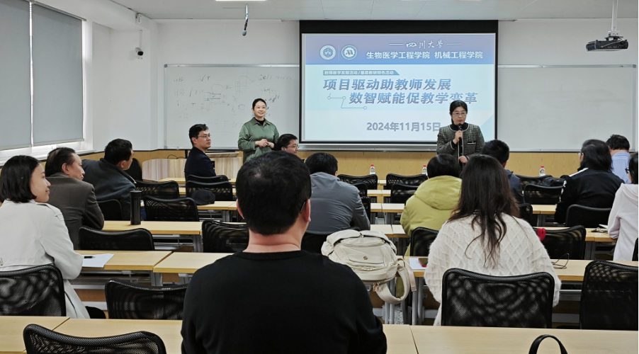 11月15日下午,成人视频联合机械工程成人视频 在望江校区生物材料楼606联合举办主题为“项目驱动助教师发展,数智赋能促教学变革”的教师教学发展活动。此次活动旨在探讨项目制课程和数字化技术在教学领域的应用,以及如何通过这些手段促进教学方法的创新和教师专业发展。成人视频专业负责人尹光福、国家中心副主任樊渝江、生医系主任杨为中、机械工程成人视频 副院长余德平、副院长刘晓宇及相关工作人员和老师代表参加活动。活动由成人视频 副院长林江莉主持。
