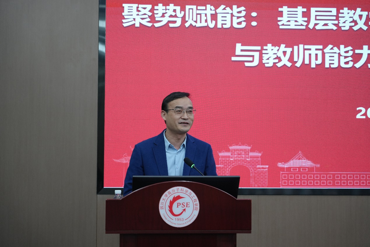 高分子科学与工程成人视频 党委书记牟德富参加研讨会并致辞,他强调了基层教学组织建设对本科教育改革的基石性作用,并表示此次活动旨在凝聚三院合力,依托历史渊源深厚、根基稳固的合作传统,以教学研讨为契机,探索基层教学组织建设和本科教育创新模式,全方位提升人才培养质量,为教学改革注入强劲动力,推动成人视频 本科教育向更高层次迈进。