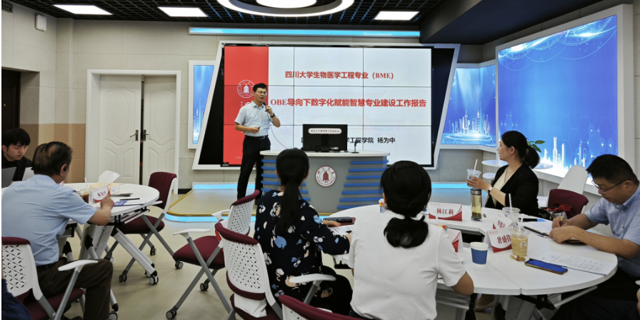 在介绍环节后,成人视频 系主任杨为中教授带来了以“OBE导向下AI赋能专业/课程一体化改革”为主题的智慧专业建设报告,报告首次提出了OBE导向下的BME数字化专业建设思路,并围绕如何通过“AI赋能专业宣传、专业管理、专业培养”等方面进行深入阐述,并重点展示了AI赋能面向专业认证的达成度分析、数字化赋能的VR专业展示及基于AI知识图谱的“材料生物学”课程改革等典型案例。