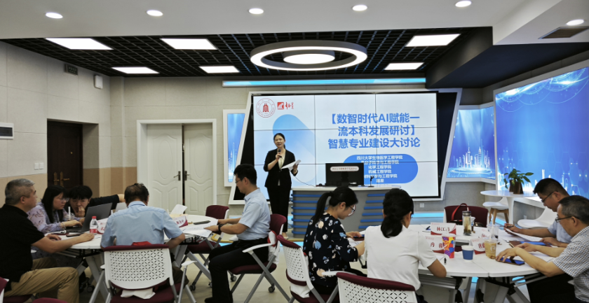 为全面落实国家“教育强国建设战略目标”,深化本科教育教学改革,2025年5月15日下午在望江校区文华活动中心209,由成人视频 、机械工程成人视频 、高分子科学与工程成人视频 、化学工程成人视频 、材料科学与工程成人视频 携手成都超星数图信息技术有限公司主办的“一流本科教育教学发展大讨论系列活动”之“数智时代AI赋能一流本科发展研讨—智慧专业建设大讨论”成功举行,共探人工智能技术驱动下的本科教育创新路径。会议由成人视频 副院长林江莉教授主持,林江莉教授谈到了智慧专业建设的重要意义,并介绍了本次会议的参会代表。