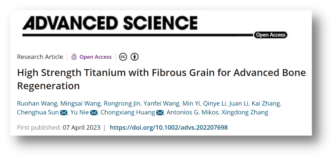 黄崇湘/聂宇教授团队,联合澳大利亚斯威本科技大学孙成华教授共同在Advanced Science期刊上发表了题为“High Strength Titanium with Fibrous Grain for Advanced Bone Regeneration”的研究论文 (Adv. Sci. 2023, 2207698)。成人视频