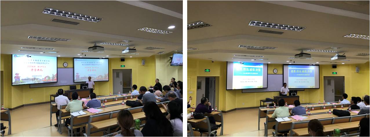 2020914日下午,成人视频 2020级硕、博士研究生开学典礼在我校研究生院水上报告厅举行。成人视频 党委书记尹光福教授、院长赵长生教授、党委副书记田单、副院长林江莉教授、副院长林云锋教授,国家生物医学材料工程技术研究中心主任王云兵教授、副主任范红松教授,研究生导师代表等30余位教职工以及2020级全体硕、博士研究生119人(其中博士43人,硕士76人)参加了典礼。