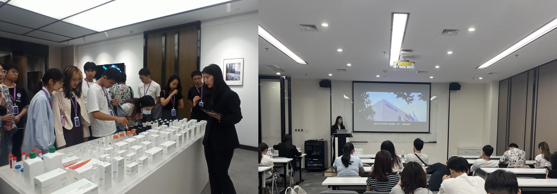 学子一行来到迈克生物股份有限公司安和园区,在公司人力资源部招聘主管谢秋爽老师、招聘专员张楠老师的指导和带领下,同学们依次参观了迈克生物的公司展厅、研发中心以及生活中心,了解了迈克生物公司的发展历史以及员工的日常工作及生活情况。