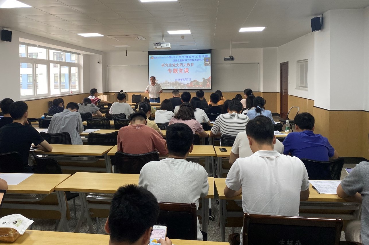 党委副书记田单老师做了“研究生党史、四史教育”专题党课,并借此拉开了本年级研究生参加“四川百万大学生同上“四史”大课网络视频培训的序幕。