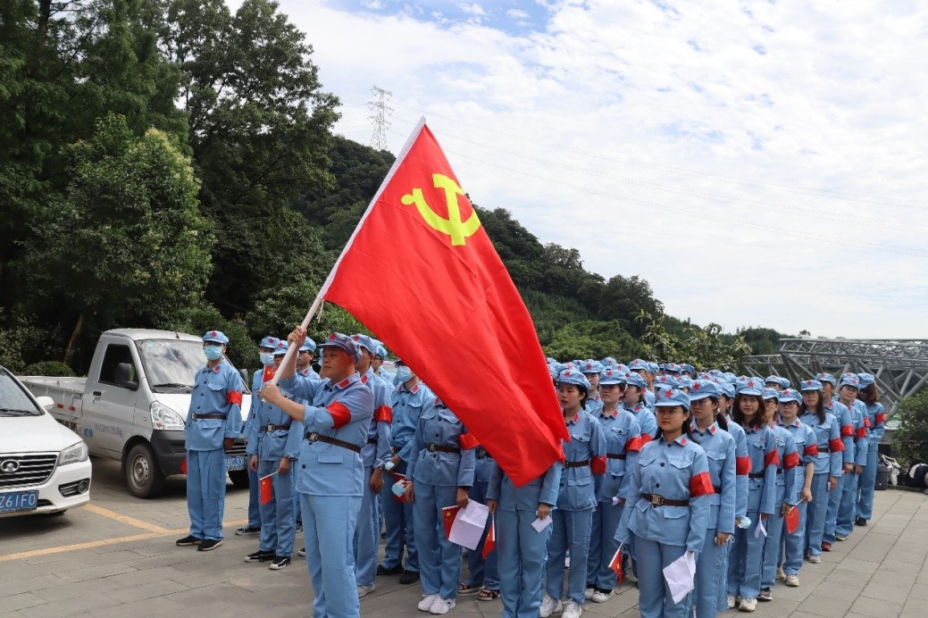 面向红军长征纪念碑,全体师生脱下军帽,敬献花篮并集体默哀,缅怀革命先烈,赓续共产党人的精神血脉。在张兴栋院士的带领下,全体党员面向党旗,重温入党誓词。