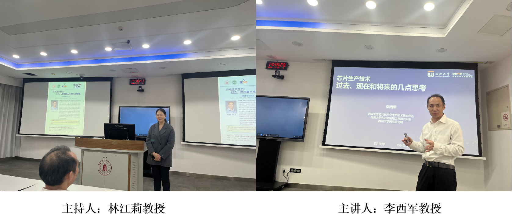 副院长林江莉教授主持,她首先介绍了李西军教授的基本情况及在芯片生产技术方面取得的一些成果。